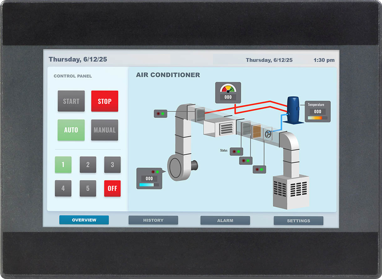 The PLC connects with a series of sensors mounted inside the HVAC unit plenum. Sensors included are: